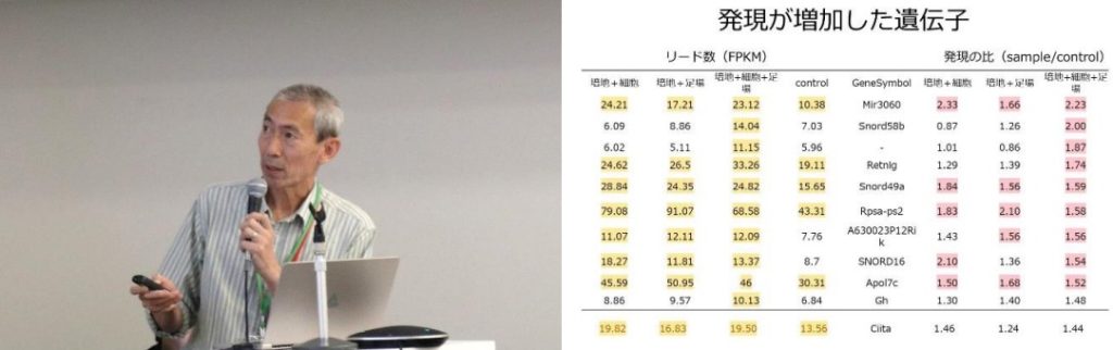 右:培養肉の摂取によって発現が増加した遺伝子群