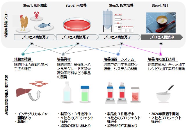 -4領域の開発プロジェクトと複数の特許出願、細胞農業の製品化を予定-