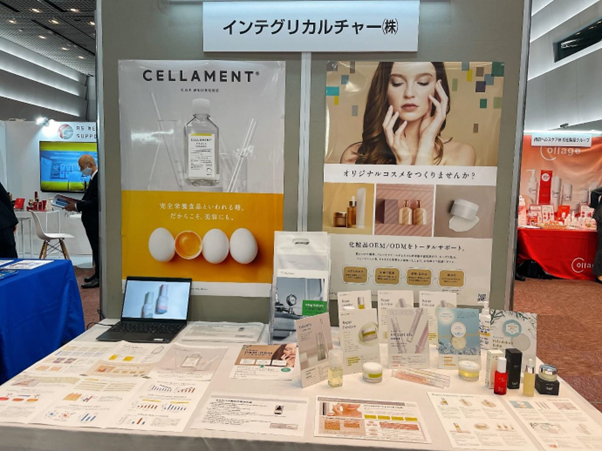 今回の総会は、「心身ともに若々しさを保つアンチエイジング科学とエビデンス」がテーマ。特別講演、教育講演、シンポジウム等、多彩なセッションが催された中、インテグリカルチャーは、独自開発した化粧品原料『CELLAMENT🄬(以下、セラメント)』に関する展示ブースを設置し、クリニック向けやOEMの製品を紹介しました。