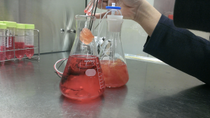 ビジョンの実現に向けて、当社では原材料コストの大半を成す培養液の低価格化と、細胞培養の大規模化技術を開発しています。