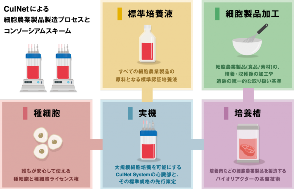 「細胞農業統一基盤「Uni-CulNet(ユニ カルネット)」は、CulNet Systemを細胞培養の基本インフラとしてご提供し、細胞培養が国内外に広く普及することを目指す構想になります。